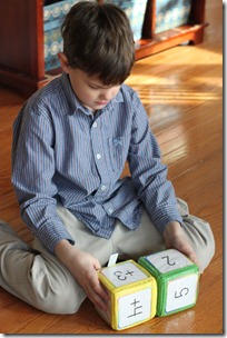 The boys have loved the hands-on aspect of the cubes and think it’s great that they can throw/roll the cubes as part of school. :) The cubes used with the Education Cubes are soft-sided cubes/dice. If you are wondering WHY that is important, I’ll let you borrow Zachary for 5 seconds so he can drop-kick one in your living room. You will quickly understand the beauty of the soft dice. :)